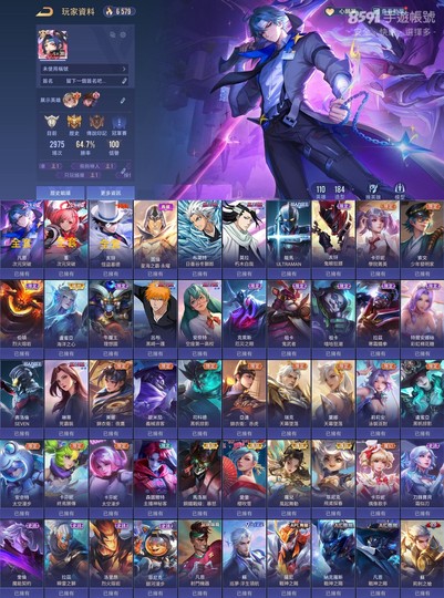 勝率佳!歷史絕世傳說印記!雙次元造型!共110英雄184造型!勝率近65%!!常用奧義皆已齊全!!