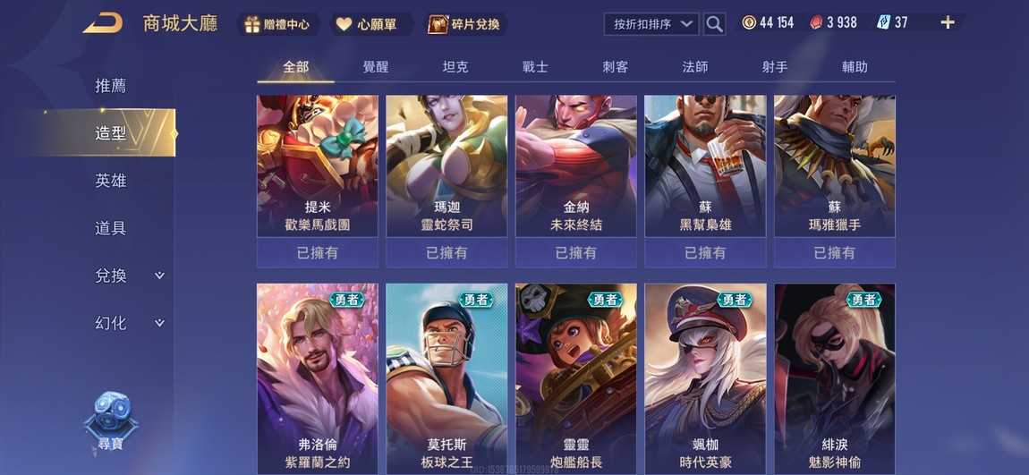 【Garena帳有綁定、永恆傳說、V4、64英、80造】千場高勝 歷史永恆 68.6% 璀璨框2 永恆框1 都未使用 2紫標 6藍標