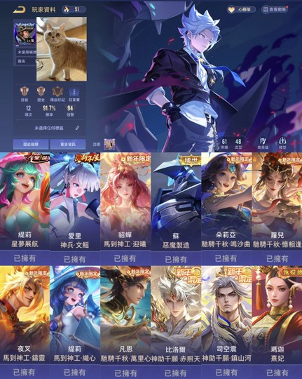 【Garena帳有綁定、青銅、V8、62英、49造】那刻次元 文瑤 貂蟬馬年 蘇惡魔 提利星展