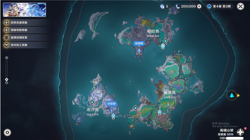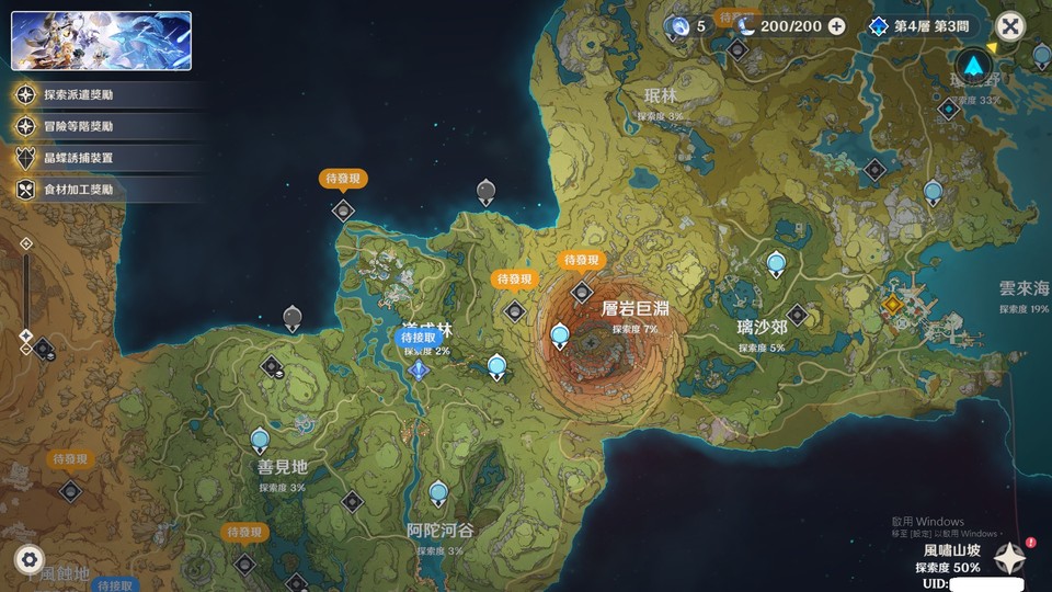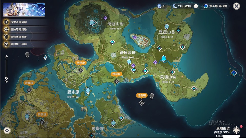 蒙德地圖, 只跟著主線進度( 探 索 低 )