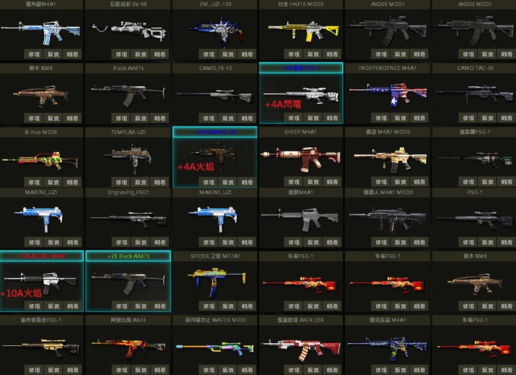 幻影原木SV、白P、藍獨角M4、17把M4、百年聖殿饑荒冥王U、原木XM8、多刀