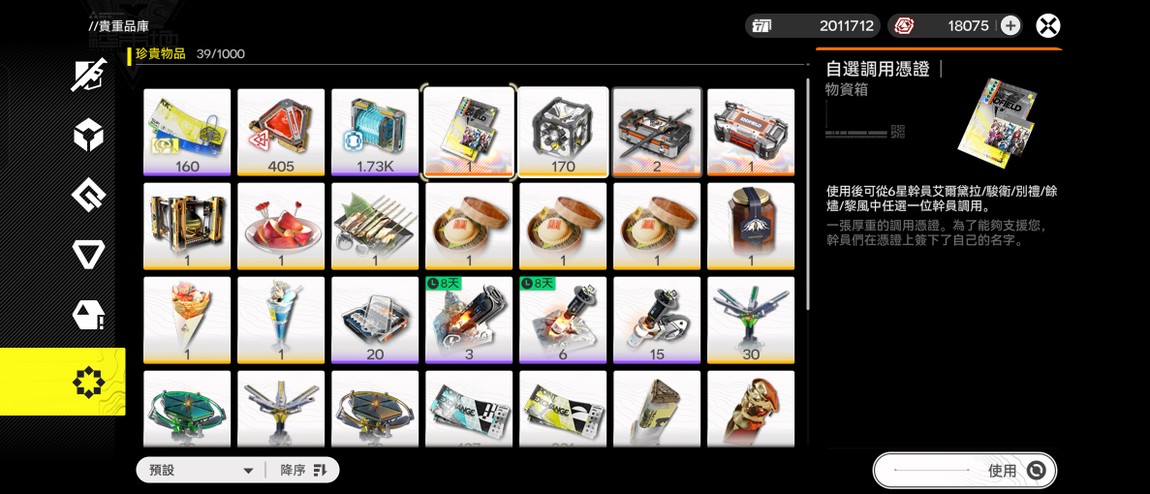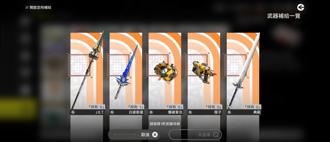 自選常駐六星券未用、自選六星武器箱未用、兩個大月卡武器箱未用