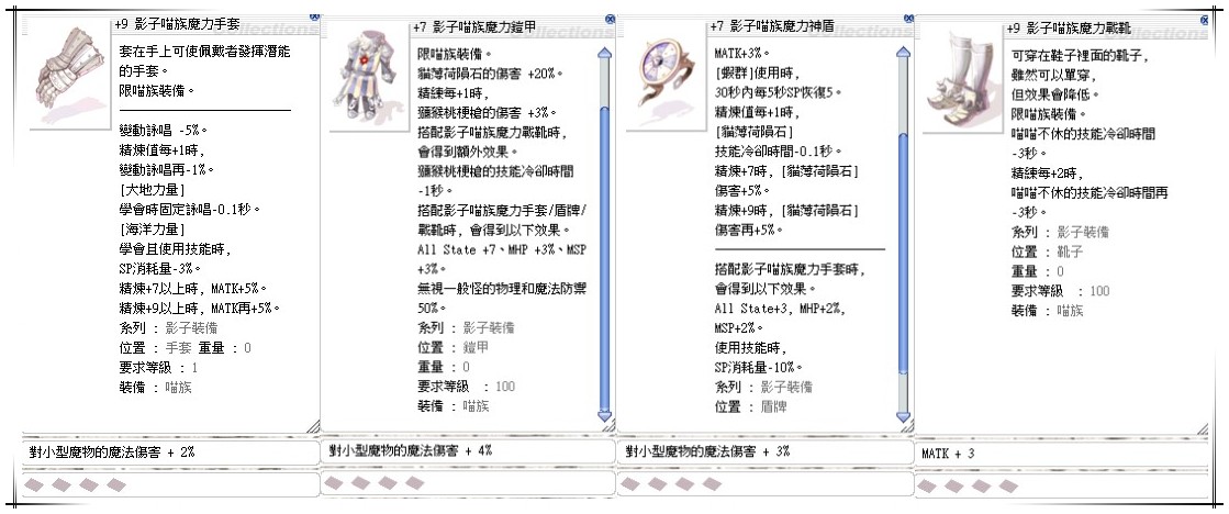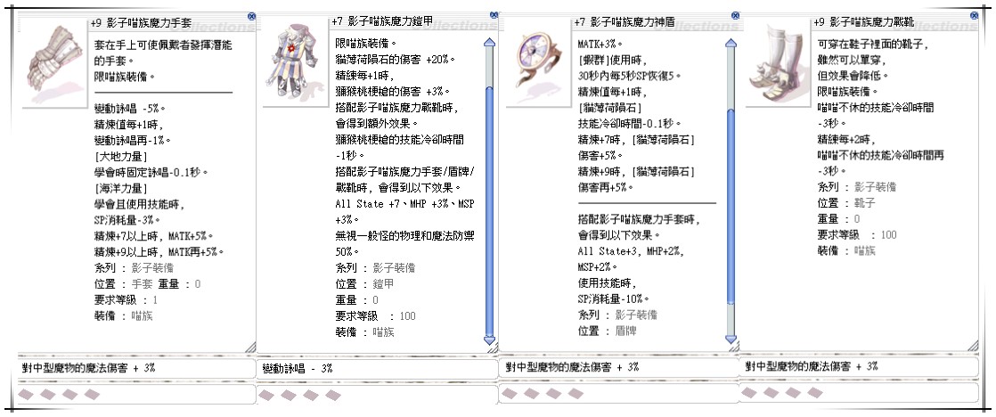 影子喵族魔力鎧甲 影子喵族魔力神盾狄克推多耳環影子喵族魔力手套影子喵族魔力戰靴
