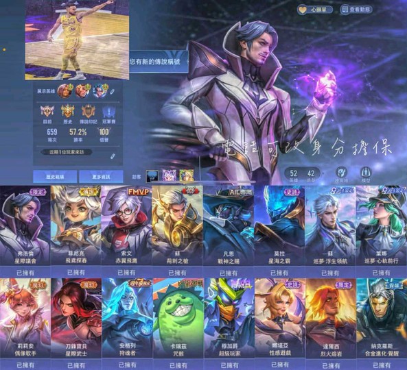 【Garena帳有綁定、鑽石、V5、52英、42造】星際