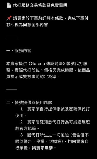 2. 買家明確知悉代打行為可能違反遊戲官方規範。