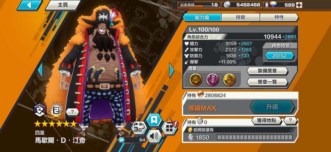 【18等】6星五老星 雙果實黑鬍子 黃猿 10超