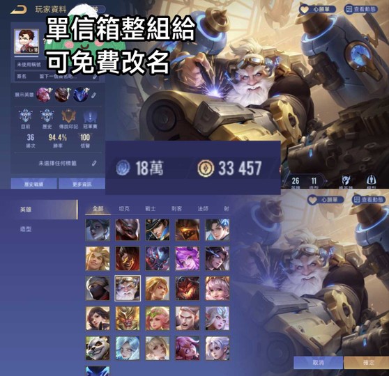 【Garena帳有綁定、鑽石、無VIP、26英、11造】新賽季現排位鑽石,金幣3.3萬,奧義碎片18萬