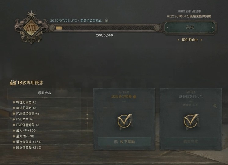 【通行證等級】: XVIII / 18級