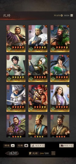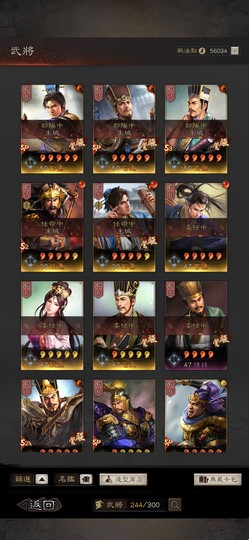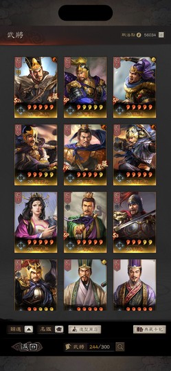 動態:sp荀彧、郭嘉、賈詡、張遼、司馬懿、滿寵、sp馬超、sp皇甫嵩、許攸、sp袁紹、sp朱儁、沮授、呂布、張角、左慈、孫尚香、淩統、周泰、sp周瑜、陸遜、sp呂蒙、太史慈、程普、張苞、關興、sp關羽、姜維、龐統、諸葛亮、關銀屏、趙雲