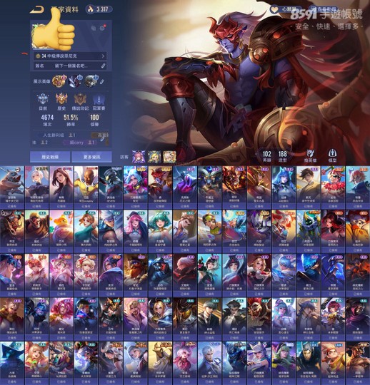 【Garena帳無綁無連、璀璨傳說、V6、102英、188造】買到賺到璀璨帳 退遊賣帳 可議價