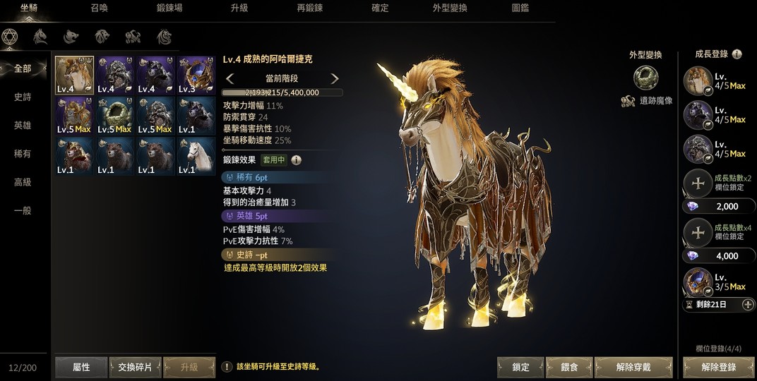 坐騎如圖 1金 4紫 隨著進度增減變化