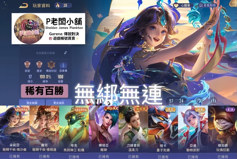 【Garena帳無綁無連、青銅、無VIP、57英、24造】稀有百勝 朵莉亞新年 蘿兒新年 夸克新年 娜塔亞新年 刀鋒溫柔刀 祖卡量子