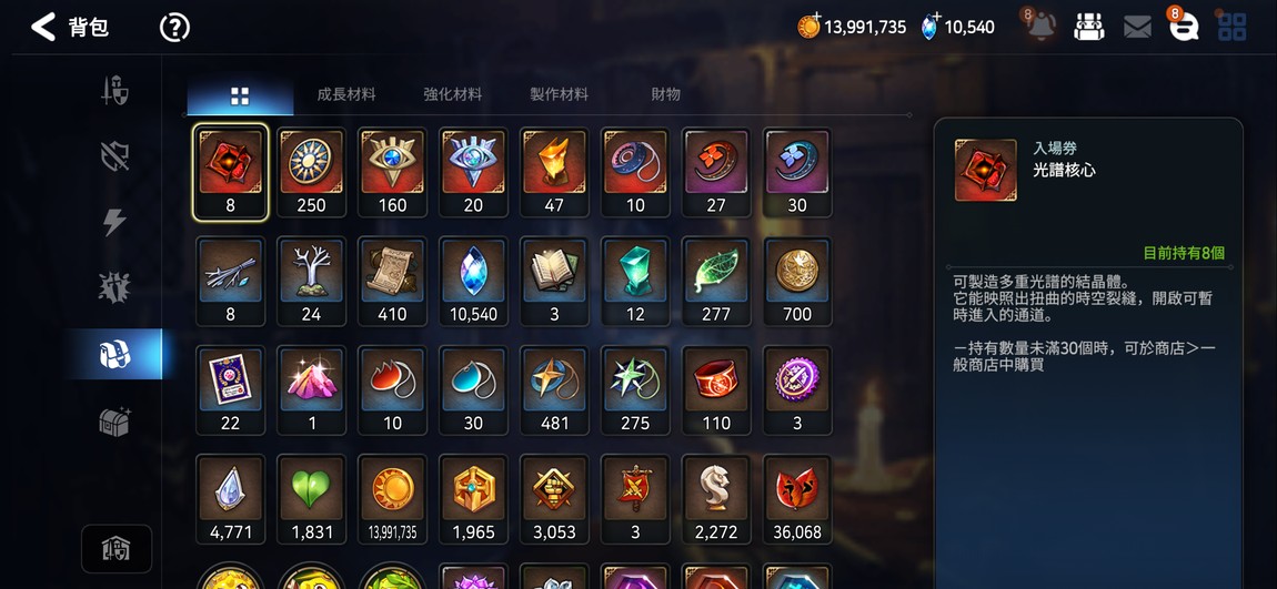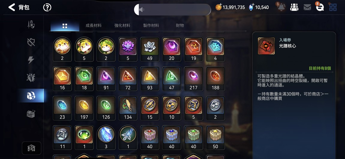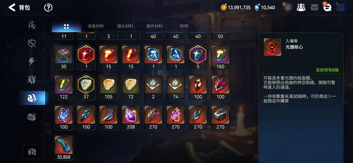 進度:光輝里程碑2(買後直接開寶箱抽光暗角)、深淵16、圖推到第二章4-1、劇情未看