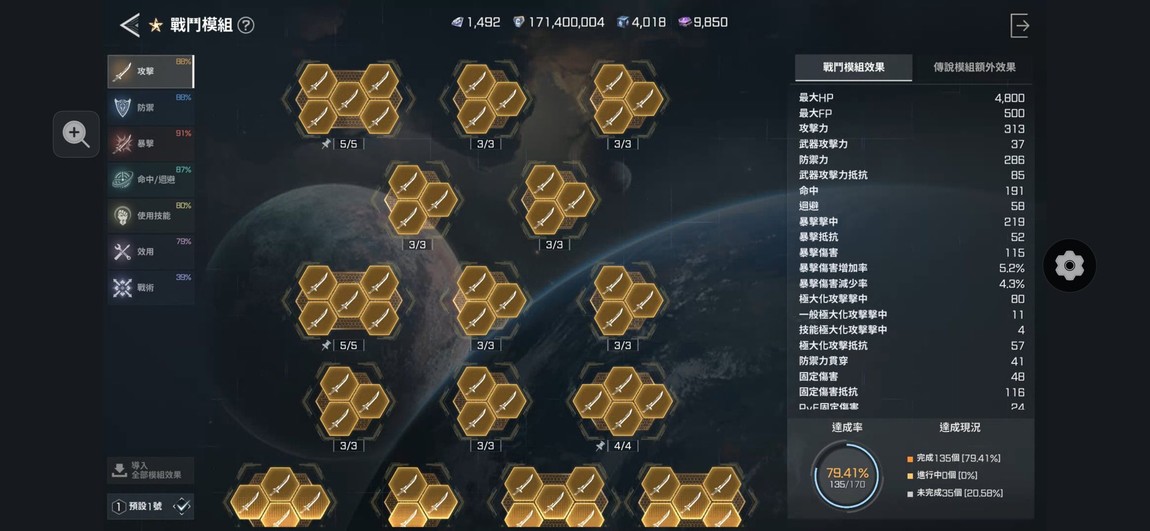 戰鬥模組有認真洗 全攻擊 !! 光節點就可以洗好幾萬鑽