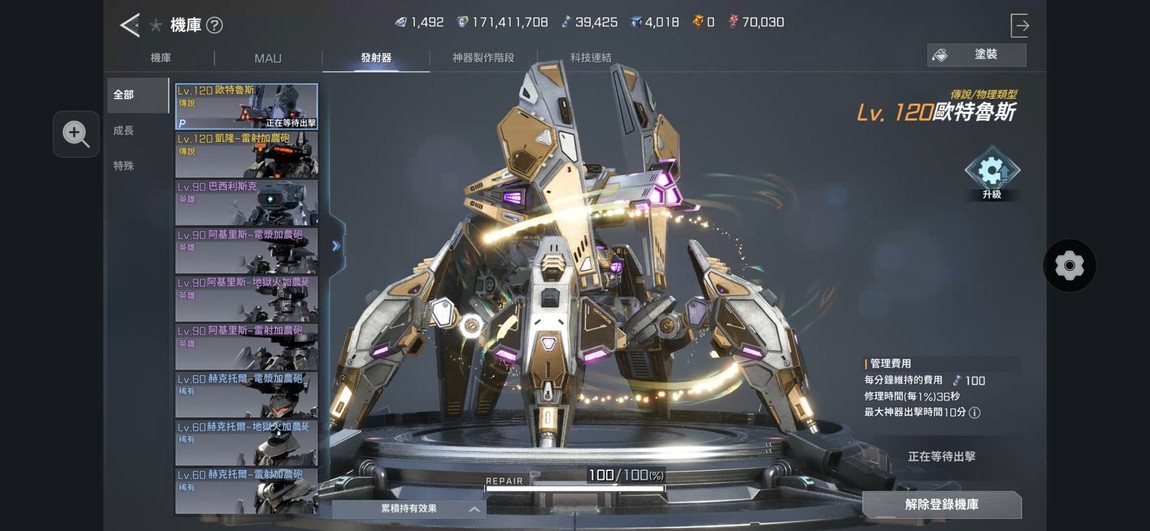 機甲金三還沒滿其他滿 發射器兩隻滿 沒有潘朵拉