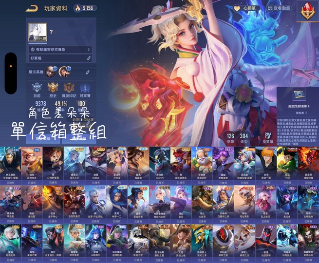 【Garena帳有綁定、鑽石、V7、126英、304造】小資族綁好多英雄