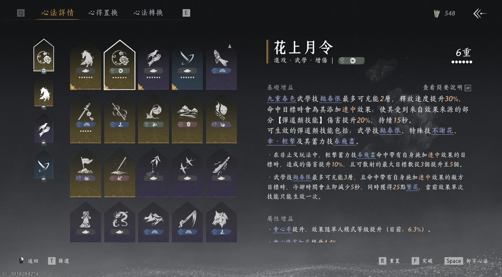 - 心法6666 花上月令 / 易水歌 / 征人歸 / 極樂泣血,全數 6 重。