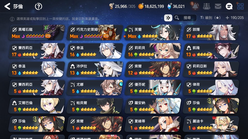 ▶適合新手、中手、小號,有完美開局多隻TOP光暗五星,不是資源玩爛的帳號,培養都往正確方向,多書籤跟天空石讓接下來抽合作角色都不是問題