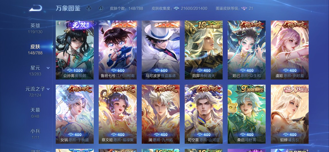 【30等】公孫離無雙、珍品傳說柯南基德蛇年年限全貂蟬情人節多傳說限定皮