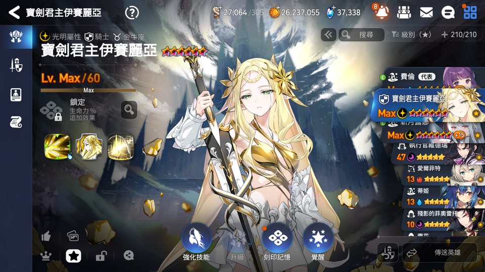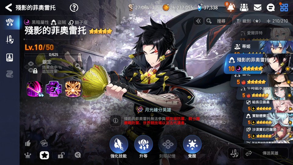 ▶適合新手、中手、小號,有完美開局多隻TOP光暗五星,不是資源玩爛的帳號,培養都往正確方向,多書籤跟天空石讓接下來抽合作角色都不是問題
