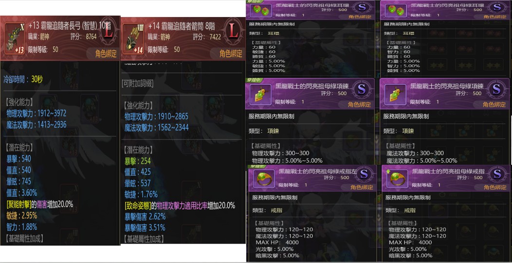 8.8魔導/10.4天弓(可隨便換魔羽) 無雙3顆 爆傷/首領超過100%