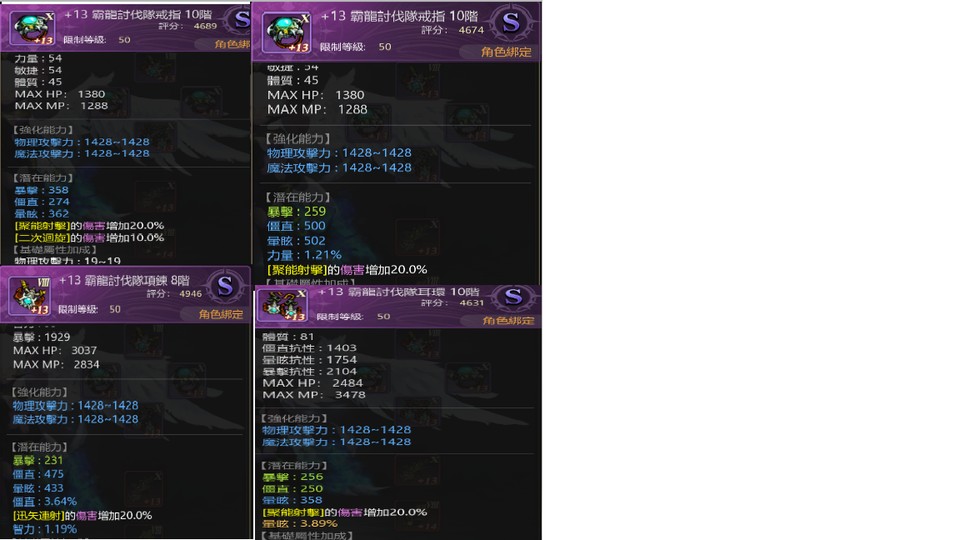 裝備:全身硬核霸龍 主副+13+14 飾物霸龍+13