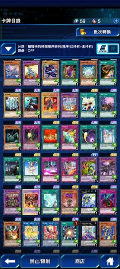 真紅眼龍騎兵牌組 巨大戰艦牌組等。限定卡-無限泡影x2。新卡月女神之戮x3 。屋敷童子x1。新動畫黑魔導女孩x2(未加工)。動畫青眼白龍x2(已加工)。動畫青眼白龍(未加工)x1。動畫黑魔導x2(已加工)。