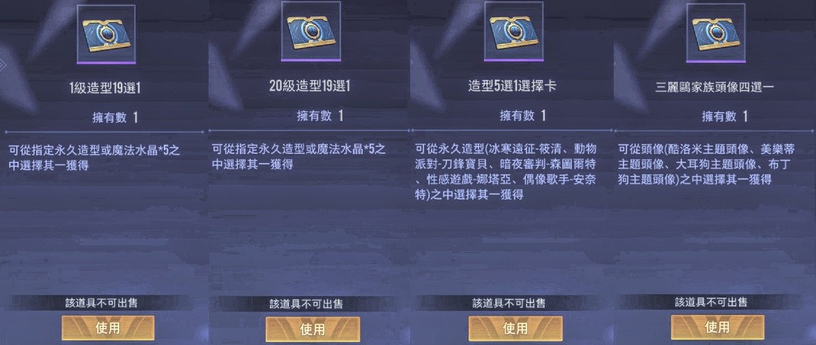 86期聖典1級造型19選1/86期聖典20級造型19選1/造型5選1選擇卡/三麗鷗家族頭像4選1/