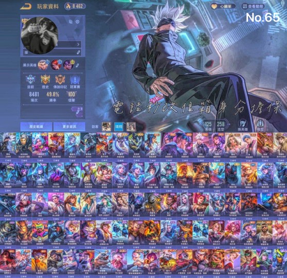 【Garena帳有綁定、先鋒傳說·天際、V7、125英、258造】五條悟 鬼武者 奧特曼SEVEN 厄災之眼 一拳 情人節 海洋之心 血煞