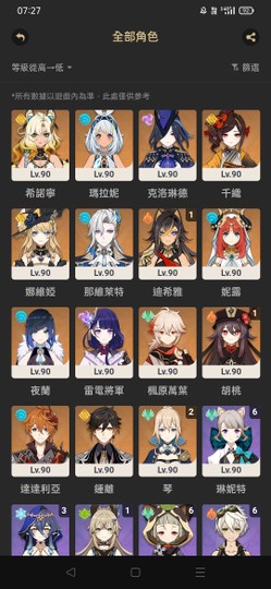 【女、59等、21金角、8金武】1+1胡桃 01那維萊特娜維婭 00夜闌希諾寧克洛琳德鍾離公子千織瑪拉尼萬葉雷神