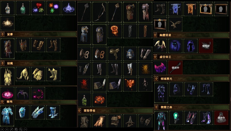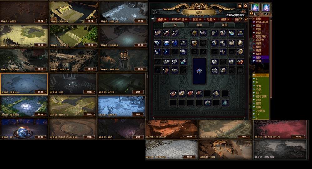 功能倉庫全齊:通貨倉、命運卡倉、傳奇收藏倉、地圖倉、精髓倉、碎片倉...等(一應俱全)。