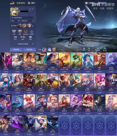 【Garena帳無綁無連、星耀、V6、50英、76造】亥牙滅世簡
