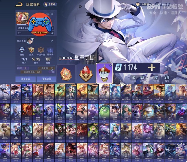 【Garena帳有綁定、鑽石、無VIP、93英、181造】柯南 基德 森圖超玩 緹莉 凡恩 朵莉亞 蘿兒 菫 夜叉 夸克 新年 時空水晶