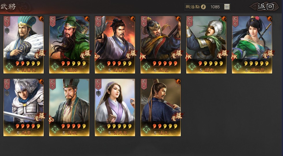 關銀屏、趙雲、周瑜、SP貂蟬、SP皇甫嵩、