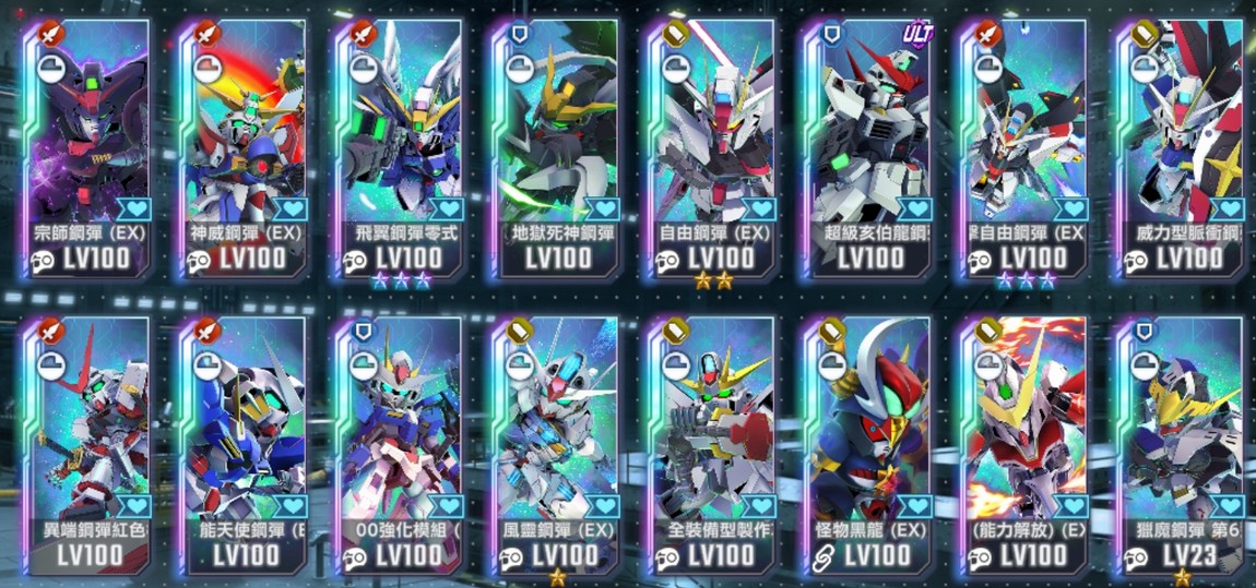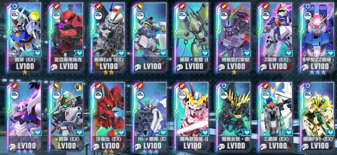 1星:鋼彈(EX)、特裝型打擊型吉姆(EX)、風靈鋼彈(EX)、獵魔鋼彈 第6型態(EX)