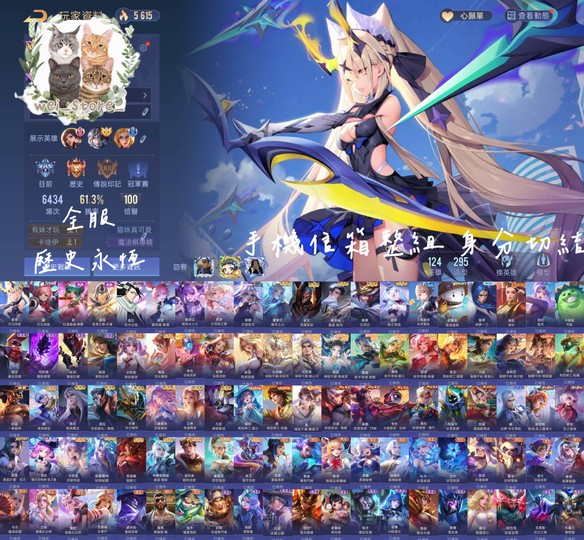 【Garena帳有綁定、永恆傳說、V9、124英、295造】高勝率 全服 次元 無雙 永耀 白哉 蜜莉姆 庫洛米 大耳狗 月落 惡魔 新年