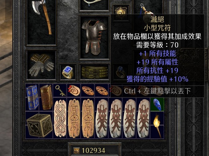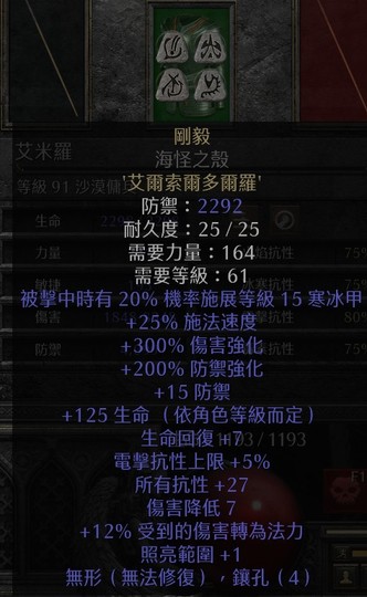 項鍊:+2死靈+7高施+19力+17法+全抗11抗冰48