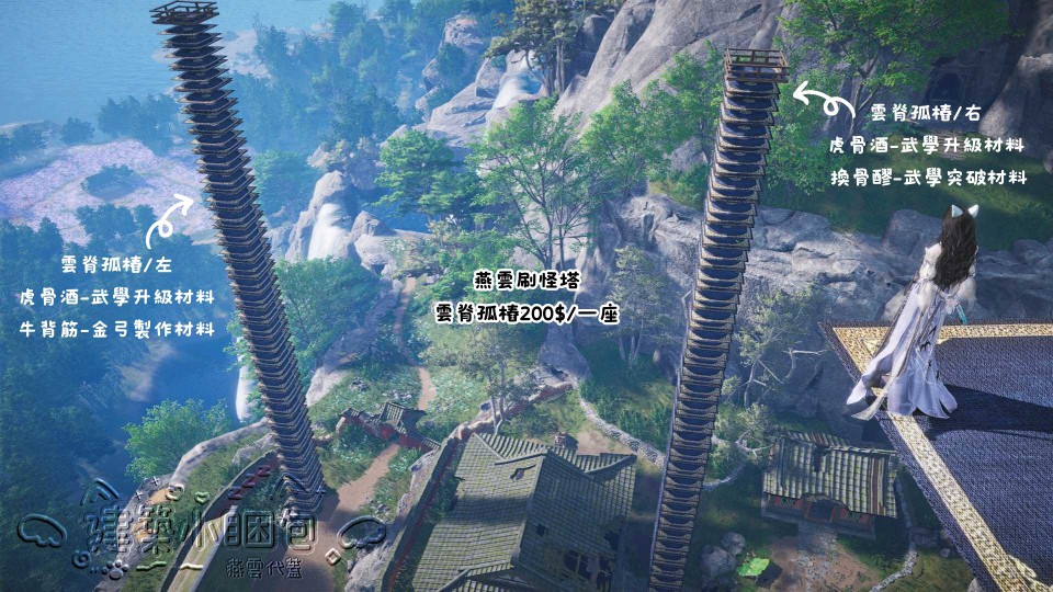 建築小睏包-虎骨酒/換骨醪/牛背筋塔/雲脊長廊/電梯刷怪塔