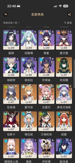 【男、9等、70金角、58金武】圖鑑黨退坑,幾乎全圖鑑角色高練度 ,大世界低練度