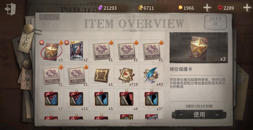 有一張金皮體驗卡3天 7天紫皮體驗卡4張 3天紫皮體驗卡6張 1天紫皮體驗卡四張