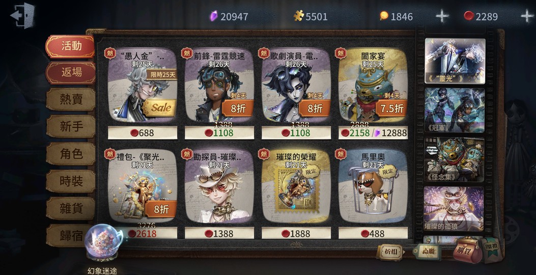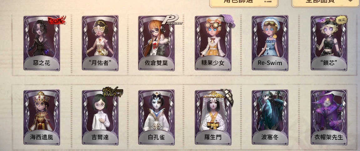 還有很多限定皮膚如鎖芯 亂步等詳見圖