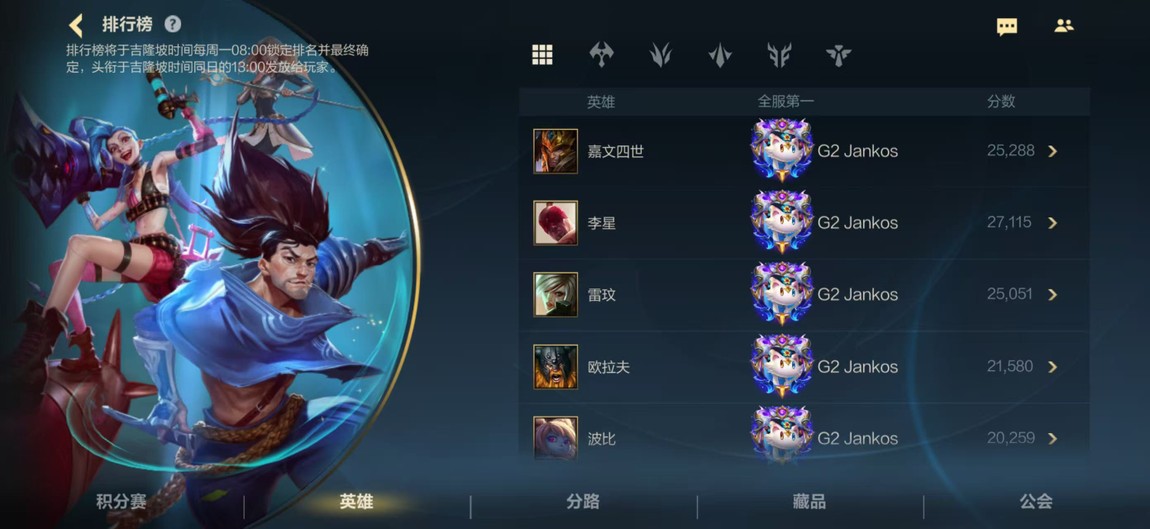 以下是自家打手的英雄排名