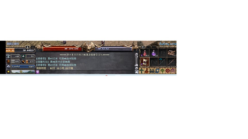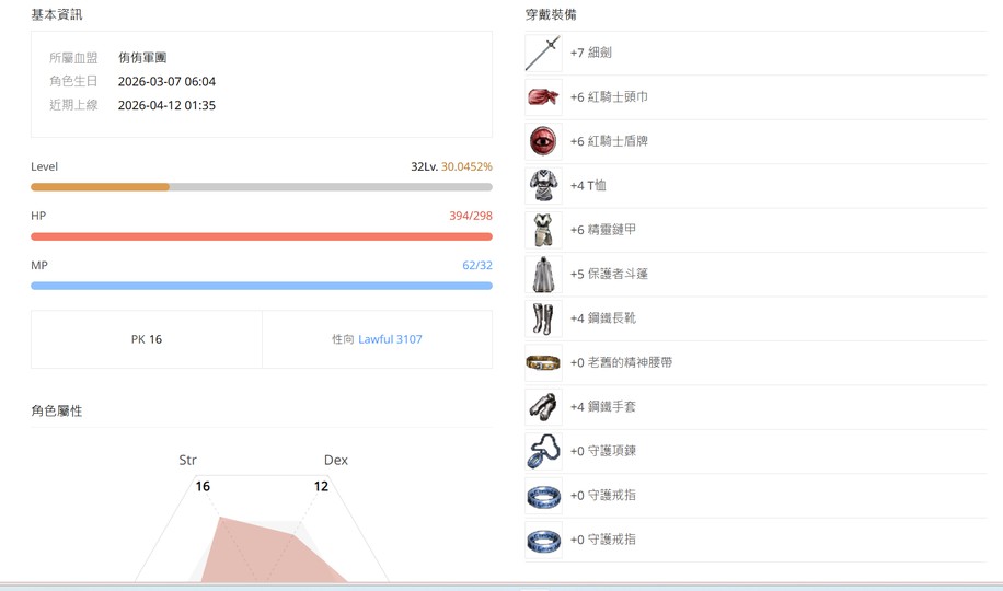 裝備如下 血394 魔32有小精神腰帶能自行通體(持續升級中)