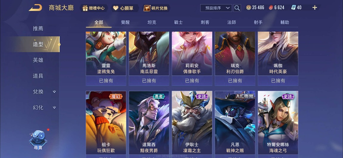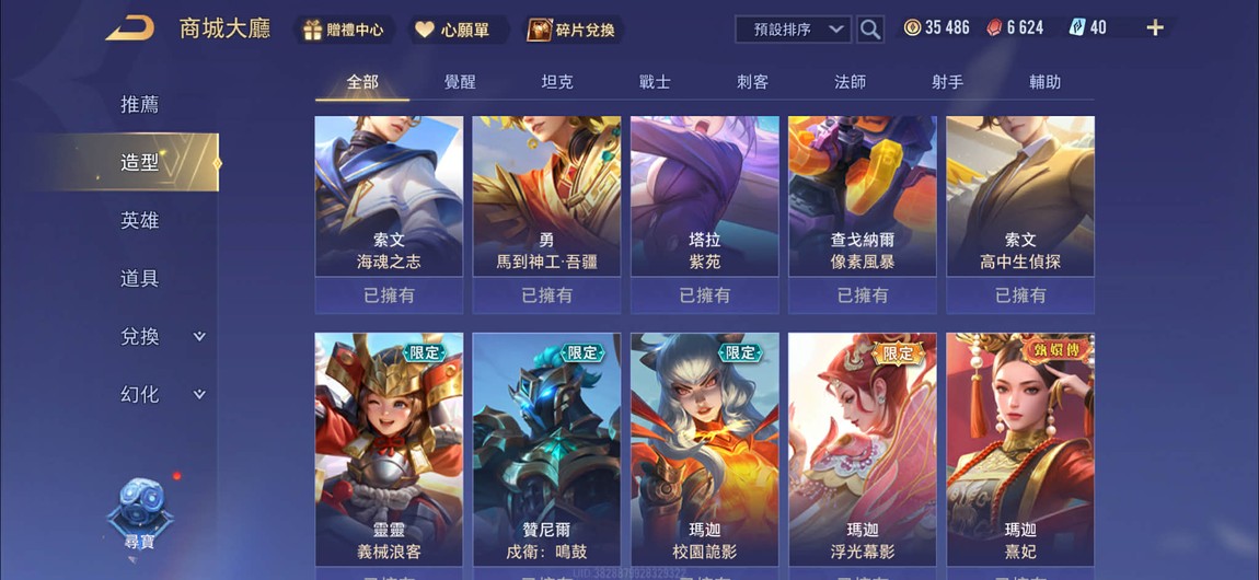 【Garena帳有綁定、白銀、V8、103英、168造】超級玩家基德史萊姆蜜莉姆紫苑咒術釘崎咒骸甄嬛傳,神助千願司空比洛浮光新年金源寶等