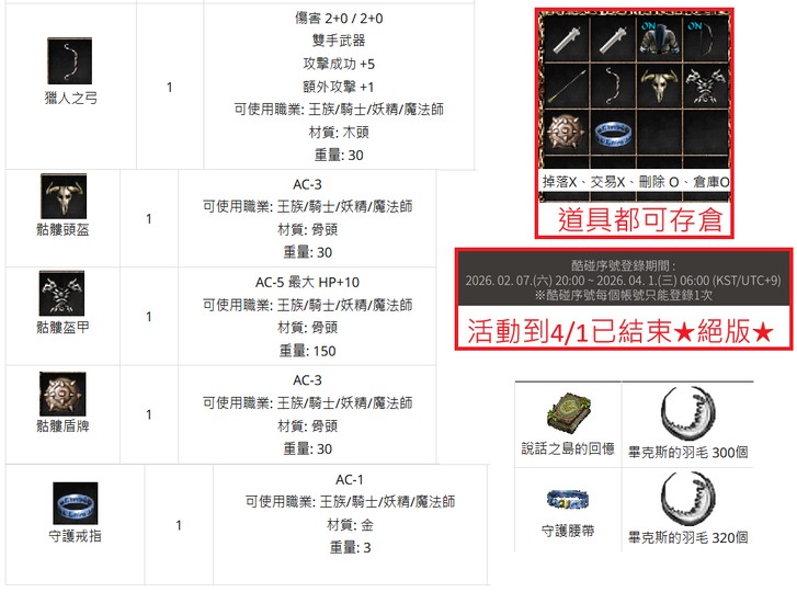 【1等、初始站坑號】【★絕版/限制創角-半人★】事前登入裝(弓)/守護戒指、羽毛204、3/24儲值