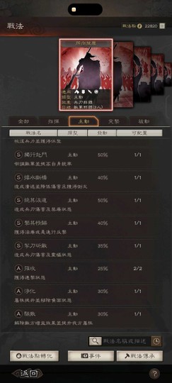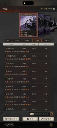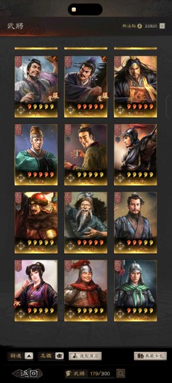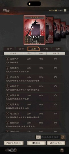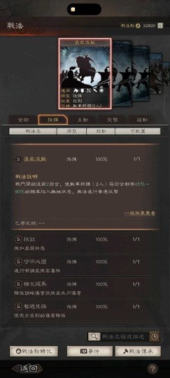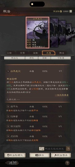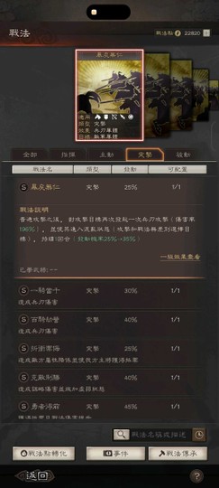 裝備:三個雙特技 兩衝陣 兩暴躁 一踩踏 四好學 五靈動 兩援助 神威 號令 赳螑 等武將專屬特技都有