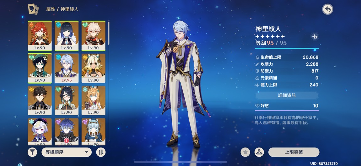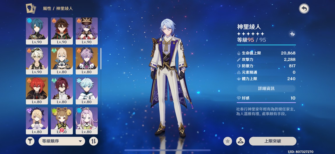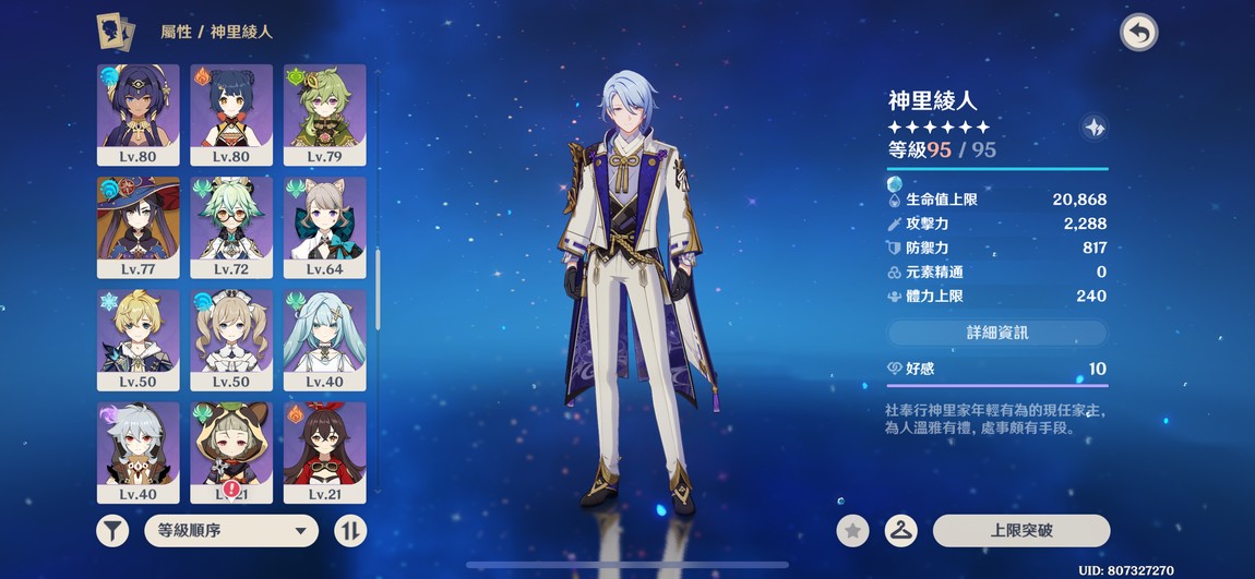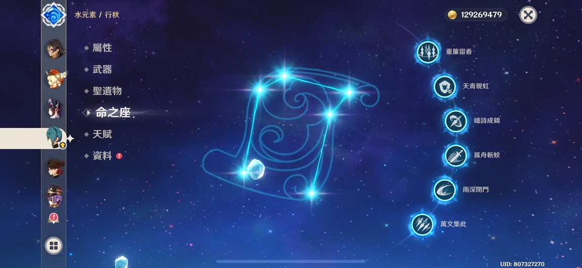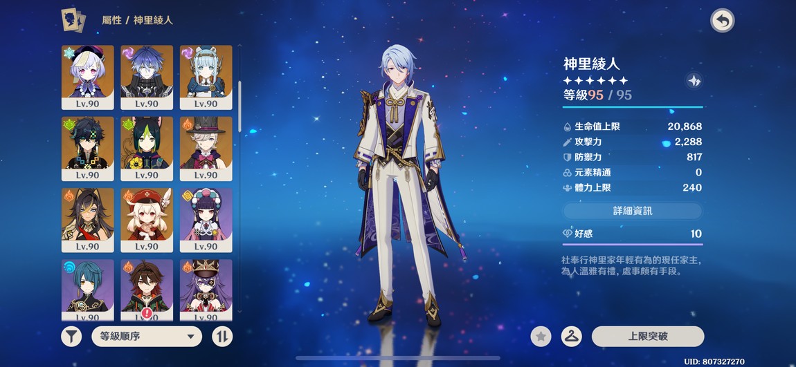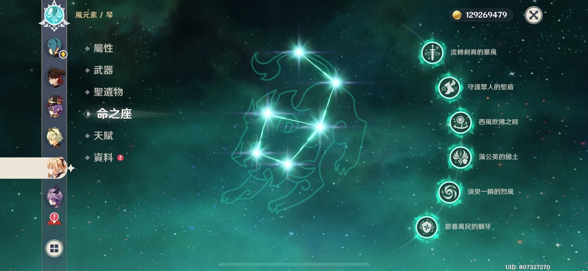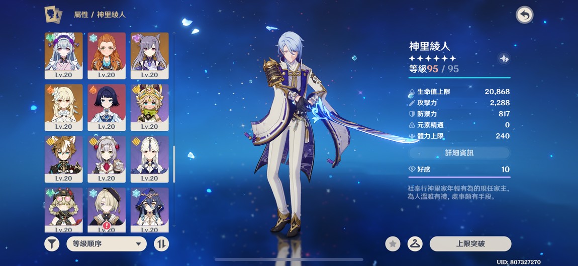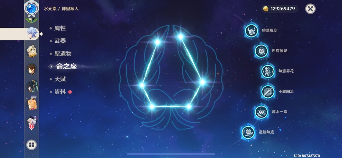 6+1綾人、林尼,6+0琴,多4星6命,遊戲進度中,還有很多劇情可以破、月感電、冰水戰艦玩起來都舒服