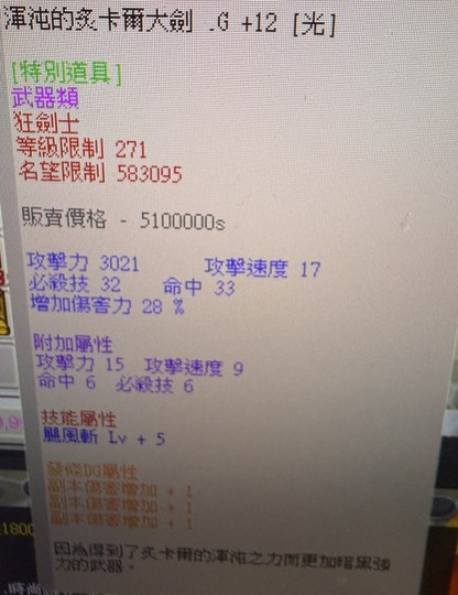 渾沌大劍G+12卡屬三副本技能已洗內詳(艾希,真銀,巴哈,黑龍,增傷,狂劍)