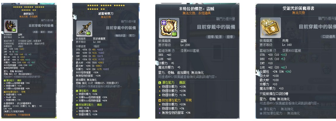 還有小二本266暗影神偷(身上還有主副武堪用、17c永恆、頂培、神秘、一隻終物爆萌獸,戰力約6xxxW,可打到困真希拉)及小二本266蓮(裝備為通行證居多,戰力約1xxxW,可打過困史戴)