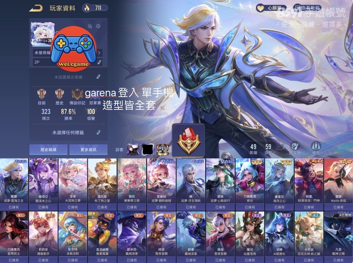 【Garena帳有綁定、青銅、無VIP、49英、59造】蘭鐸九週年雲海 酷洛米 大耳狗 布丁狗 愛麗絲巡夢 刀鋒疾光 盛典 傳說水晶